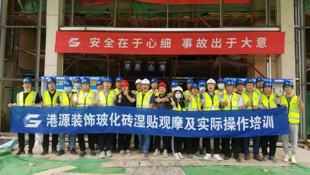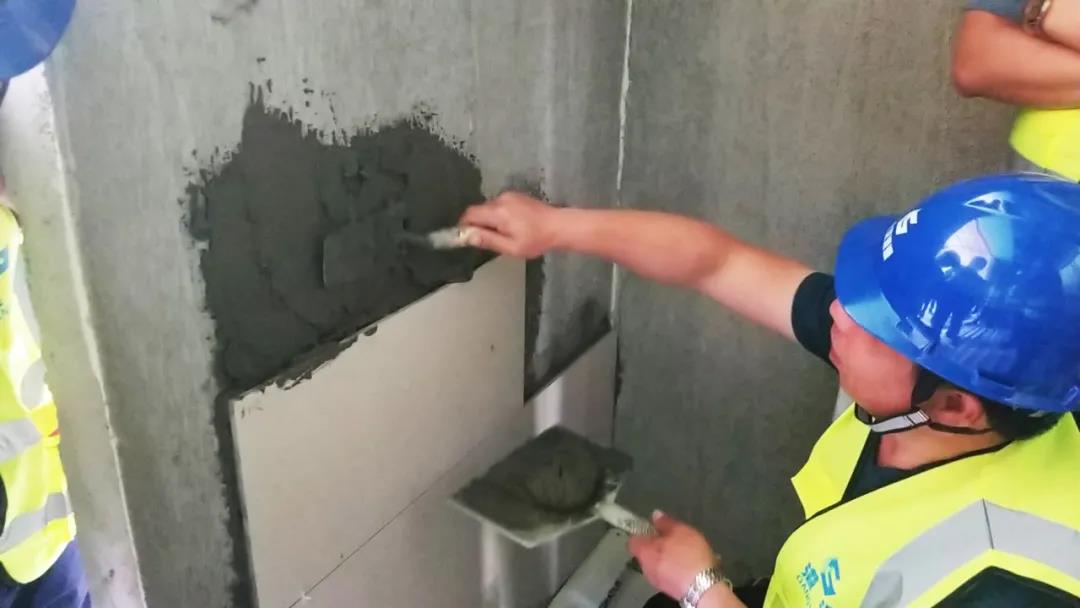 ▲ 港源管理人員在施工現場(chǎng)完成濕貼實(shí)際操作,增強對專(zhuān)業(yè)工序的監督及指導能力。