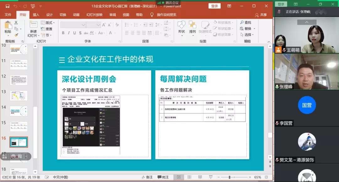 ▲ 港源裝飾各單位通過(guò)線(xiàn)上、線(xiàn)下形式,定期舉行企業(yè)文化學(xué)習、研討、復盤(pán)。