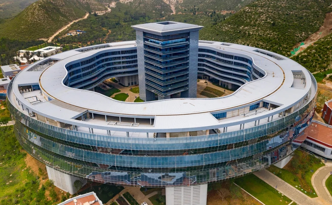 中國電科電子科技園位于河北淶水,是在青山碧水之間建造的大體量科研綜合體,由九大建筑組團共同構成了這座“桃花源中的科技園區”。