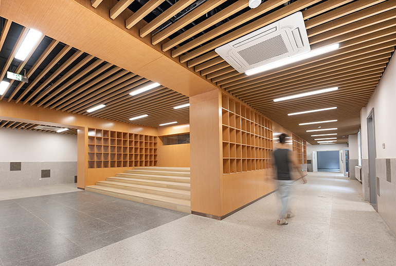 在施工過(guò)程中,港源裝飾項目團隊突破高空作業(yè)多、各工種同步施工、體量大工期短等重重困難,最終為全校師生打造了一個(gè)健康、安全、環(huán)保的學(xué)習環(huán)境。